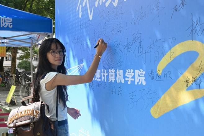 新同学朝气蓬勃,意气风发,为校园注入了新活力。他们在印有“代码筑梦 新程启航”的ok1133诸侯快讯迎新展板上写下了名字并合影留念,纷纷表示对即将开启的大学生活充满期待。