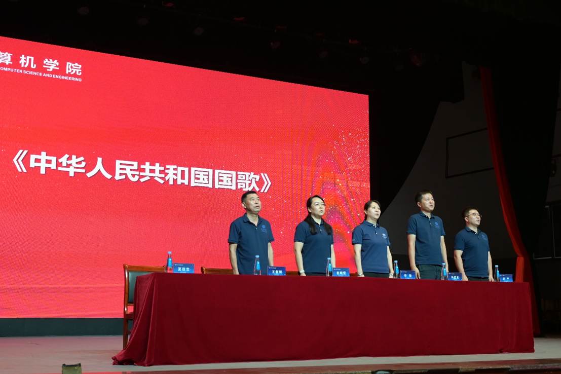 伴随着雄壮的《义勇军进行曲》,全体人员肃立奏唱国歌,开学典礼在庄严的氛围中正式拉开序幕。