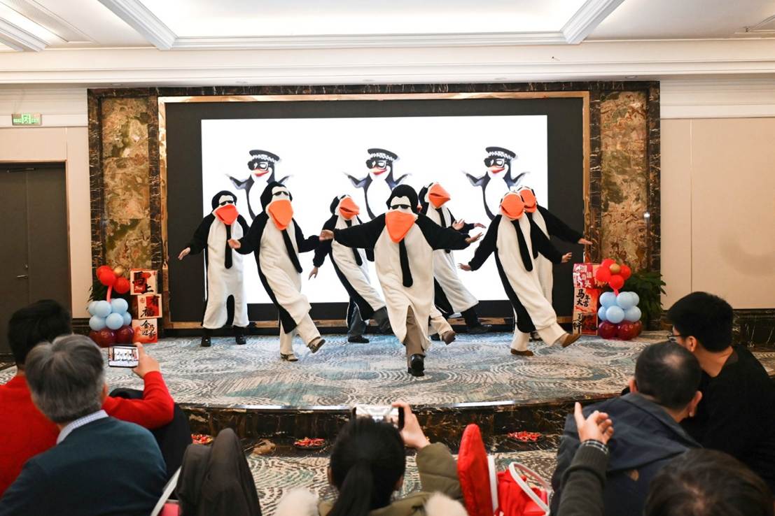 学院领导带来的三句半表演幽默风趣,用接地气的台词盘点学院年度亮点,瞬间点燃全场氛围;舞蹈《拜新年》以灵动欢快的舞步传递着新春的喜庆;合唱《红豆》深情婉转,数据系全体老师带来的合唱《朋友》则展现了同事间的深厚情谊;诗朗诵《青春万岁》激情澎湃,诉说着师生们不负韶华的奋进姿态;新进教师合唱的《不忘初心》,彰显了教育工作者立德树人的使命担当;全体辅导员带来的《高雅人士舞》创意十足,展现了学工队伍的活力与风采;实验中心的大合唱《信息大楼,师生情》唱出了学院大家庭的温暖与凝聚力;大数据研究院的舞蹈《越来越好》将演出推向高潮,寓意学院未来蒸蒸日上。
