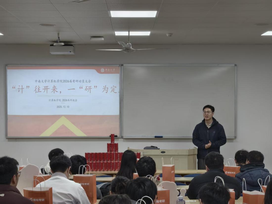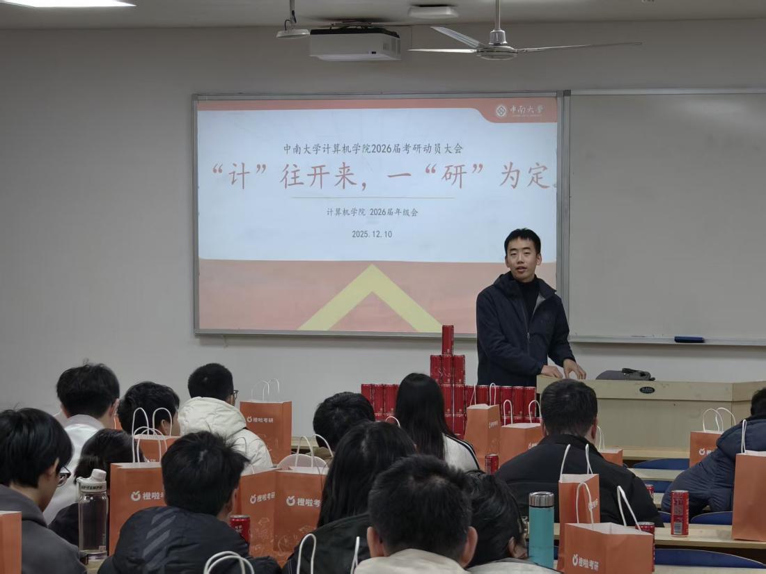 考试结束后,考研动员大会正式开始,22级辅导员陈司宇、刘烁烁,年级会学生干部和全体考研同学参与会议。陈司宇老师提醒大家在最后阶段注重调整状态、梳理重点,并保持身心健康,同时代表学院表达了对同学们的全程支持。刘烁烁老师勉励大家坚定信心、从容应考,发挥出自己最好的水平。动员会最后,年级会为每位考研同学送上“考研加油包”,传递学院的温暖关怀与真挚祝福。